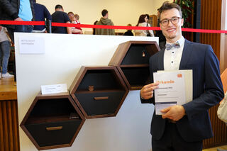 Josia Daumüller aus Bad Wimpfen hat für den besten Abschluss mit der Note 1,7 die Meisterprämie des Landesfachverbands bekommen. Bild: Widdrat