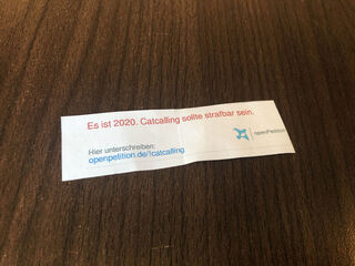 Franka hat immer diesen Zettel dabei, um ihn demjenigen, der sie verbal belästigt, zuzustecken.