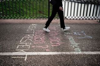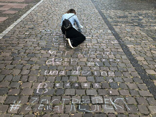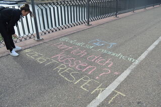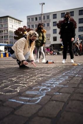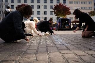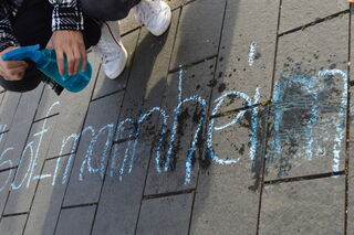 Die Aktivistinnen müssen die Kreidekunst nach Ablauf der Genehmigung immer abwaschen.