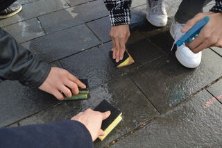 Mit vereinten Kräften wird der Protest wieder abgewaschen. Die Genehmigung gilt nur einige wenige Tage.
