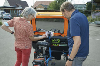Der Akku am Hinterrad hat Saft für rund 30 Kilometer. Dann muss die Rikscha wieder an die Steckdose.