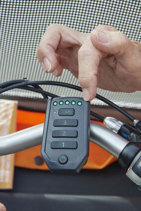 Die Steuerknöpfe, mit denen sich die elektrische Unterstützung zuschalten lässt.