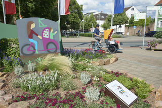 Sogar auf dem Pflanzenkleeblatt am Europaplatz hat die Rikscha ihren Platz gefunden.