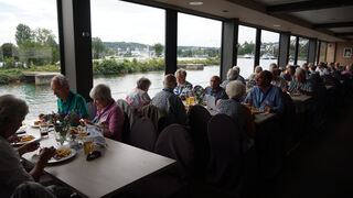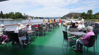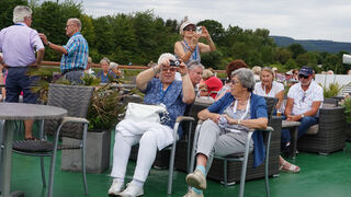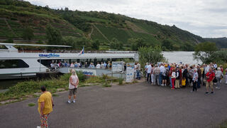 140 Morgentourler gehen in Kobern-Gondorf an Bord der MS Königin Silvia.