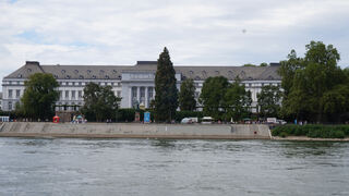 Die Morgentourler genießen den herrlichen Ausblick - im Hintergrund rechts die Festung Ehrenbreitstein.
