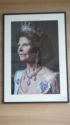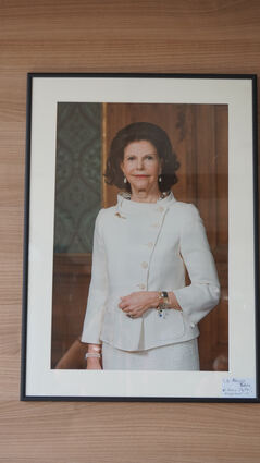 Im Schiffssalon schaut Königin Silvia von Schweden den Gästen zu.