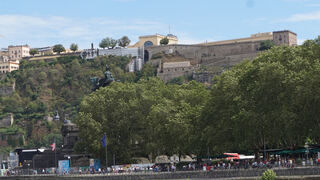 Ein Blick auf die Festung Ehrenbreitstein gegenüber der Moselmündung in Koblenz.