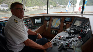 Und los geht die Morgentour über Mosel und Rhein mit Kapitän und Schiffseigner Karl Hofstätter am Steuerstand.
