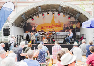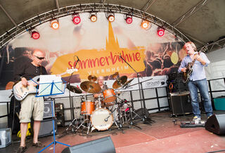 Voll besetzte Bankreihen beim " Morgen-Jazz" auf der Sommerbühne in Viernheim empfingen die Musiker ...