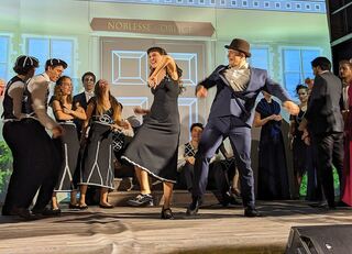 Minna Baranyai und Julius Lehmann glänzen als Hauptfiguren Sally und Bill in der Inszenierung von Me And My Girl, die bei den letzten beiden Aufführung für dieses Jahr in der Ladenburger Martinsschule begeistert hat. Insgesamt haben bei allen Auftritten seit der Premiere in Heidelberg vor wenigen Wochen 1700 Menschen in der Region zugeschaut.
