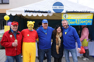 Gemeinsam am Stand der Moderation: Alfred Bröckel (Ehrensenator Narrhalla Ketsch, v. l.), Bürgermeister Timo Wangler, Bernd Bürkle (Moderator und "Ketscher Bu"), Michaela Issler-Kremer (Leitung Seniorenbüro Ketsch) und Jürgen Kugler (Vorstitzender IG Ketscher Vereine).
