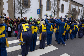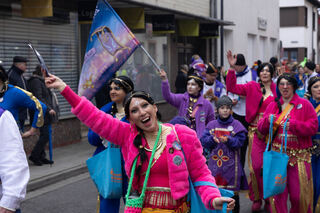 Der Spielmannszug aus Brühl mit bunten Kostümen.