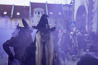 Lila Rauch und schaurige Masken bieten die Schwarzhexen aus Albstadt.