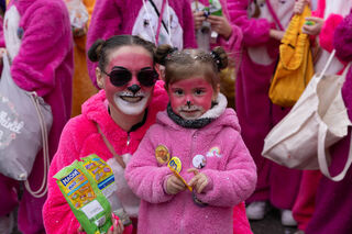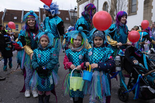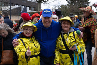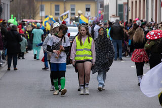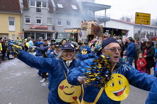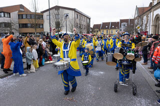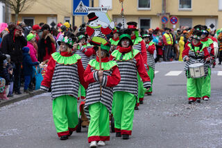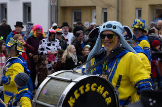 Die Ketscher Hewwlguggler sorgen mit ihrer Guggenmusik für gute Laune bei den Umzugbesuchern.