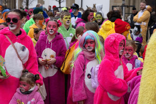 Eine Tradition ist es an Fasnacht auch, das Gesicht komplett mit Farbe zu schminken.
