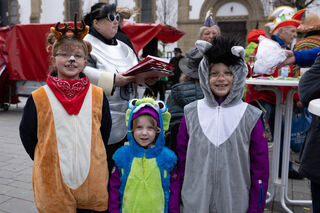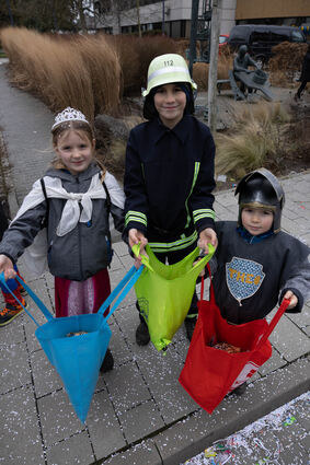 Frieda, Paul und Theo zeigen stolz ihre Ausbeute. Sie sind extra für den Ketscher Umzug aus Schwäbisch Hall angereist.
