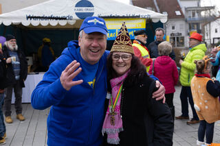 Die Moderatoren vom Ketscher Umzug: Der "Ketscher Bu" Bernd Bürkle und Karin Urbansky.