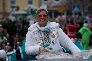Prinzessin Larissa I aus der Rennstadt Hockenheim, aus dem Hause Ruß und Glück grüßt die Besucher des Ketscher Umzugs.