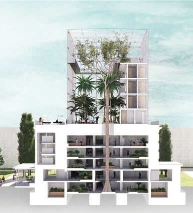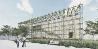 Kim William entwarf einen mit Hopfen bepflanzten Brauereibunker