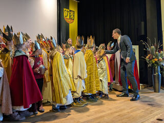 Die Sternsinger brachten den Segen und wurden kurz von Bürgermeister Thorsten Walther "interviewt".