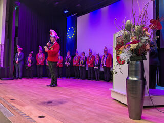 Nachdem die Karnevalisten (vom KVI - Karnevalverein Insulana) das Programm übernommen hatten, musste sich der Bürgermeister den Frotzeleien der KVI-Vorsitzenden Sabine Grözinger-Dambach erwehren.