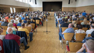 Die volle Halle zeigt das rege Interesse der Neulußheimer Bürger an der Wahl ihres neuen Bürgermeisters oder ihrer neuen Bürgermeisterin.