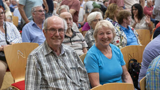 Altlußheims ehemaliger Bürgermeister Ewald Hestermann mit Gattin zeigen großes Interesse an der nachwachsenden Bürgermeistergeneration.