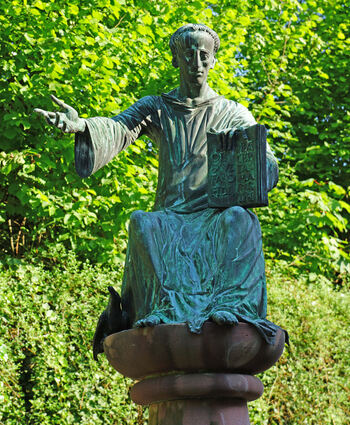 Die Skulpur des Heiligen Benedikt, dem Gründer deshier beheimateten Ordens, begrüßt die Gäste im Eingangsbereich des Klosters.