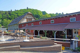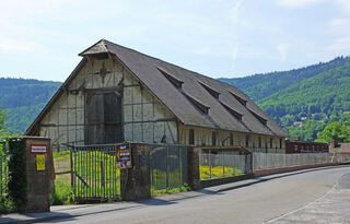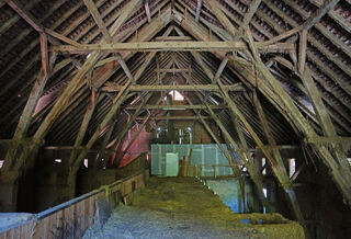 Blickfang des Areals ist die große Scheune, die unter Denkmalschutz steht.