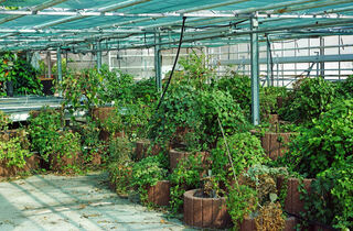 Blick in das Gewächshaus, in dem sich eine Efeu-Sammlung mit rund 600 Arten befand. Die Pflege der Sammlung stand explizit im Pachtvertrag, wurde zuletzt wohl aber nicht mehr wahrgenommen.