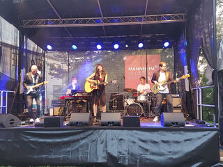 Die Band Gap in the Clouds eröffnete den musikalischen Abend. Von links: Joannis Schadeck (Keyboard), Pascal Fabian (Schlagzeug), Sängerin Julia Zabel, Florian Hölzel (Bassist) und Elias Friebe (Gitarrist).