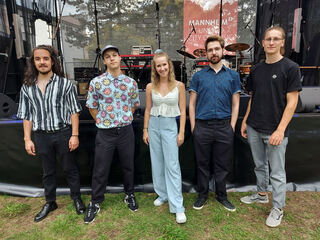 Die Mitglieder der Band Ember Tales (von links): Simon Schneid an der E-Gitarre, Keyboarder Quentin Vogel, Sängerin Louisa Wenderoth, Schlagzeuger Benedikt Weiß und Bassist Michael Goldmann.