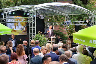 Alexander Schweitzer bei seiner Ansprache im Heylshofpark.