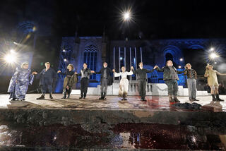 Ministerin Katharina Binz, Ministerpräsident Alexander Schweitzer, Intendant Nico Hofmann und Claudia Roth