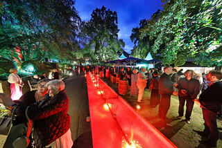 Vor der Premierenvorstellung steht erst einmal der rote Teppich vor dem Kunsthaus Heylshof als Eingang aufs Festspielgelände auf dem Programm.