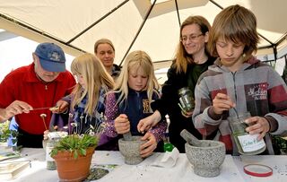 Lorsch; Welterbe- und Geo-Naturparktag mit Pfingstrosenfest; Wildkräutersalz selbst gemacht; Bild: Dietmar Funck