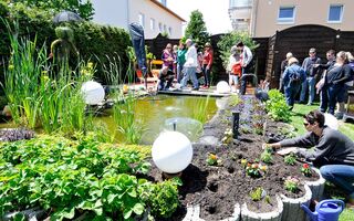 Lorsch; Tag der offenen Gärten und Höfe in Lorsch; Garten mit Designteich von Ulrich Sollors und Silke Sauer; Bild: Dietmar Funck