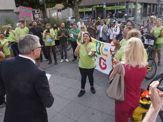 Schülerin Zlatka appelierte an Oberbürgermeister Peter Kurz: „Wir haben das Recht auf einen sicheren Schulweg. Wir wurden vergessen. Aber wir haben viele Unterstützer in Mannheim und wollen auch Ihre Unterstützung.“
