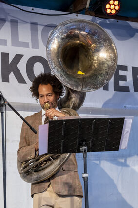Matthew Bookert von den "Southwest Oldtime All Stars" am Sousaphon.