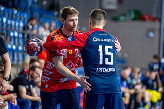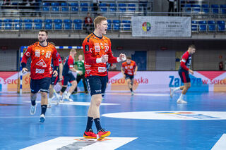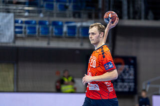 Rhein Neckar Loewe Jon Lindenchrone Andersen (Nr.42) jubelt beim Spiel in der EHF European League