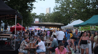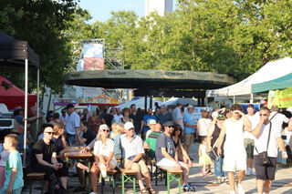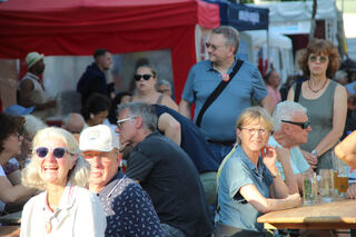 Erster Abend des Großen Rheinauer Stadtteilfestes. Bereits zu einem frühen Zeitpunkt haben sich bei strahlendem Sonnenschein zahlreiche Besucher auf dem Rheinauer Marktplatz eingefunden.