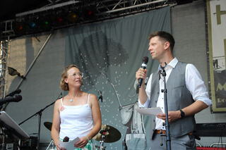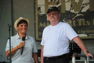 Mit ihrem Mann Georg ("Schorsch") freut sich auch Heidi Wolf (l.) über den gelungenen Start des Festes. Als Schriftführerin des Gemeinnützigen Vereins Rheinau hat sie in den zurückliegenden Wochen und Monaten viel Arbeit und Engagement in die Vorbereitung dieser Großveranstaltung gesteckt.
