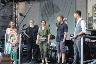 Freude über den gelungenen Festbieranstich (v. l.): Andreas Schäfer, Andreas Flisiak, Rebecca Beteta Vazquez und Wolfgang Göck.