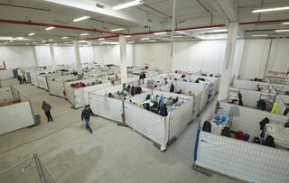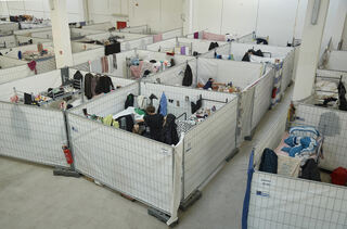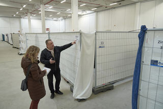 Kreisbeigeordneter Matthias Schimpf gewährt einen Einblick in die Unterkunft.