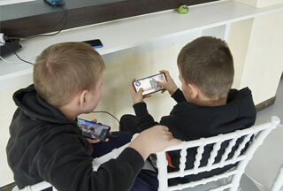 Zeitvertreib: Kinder spielen auf dem Smartphone.