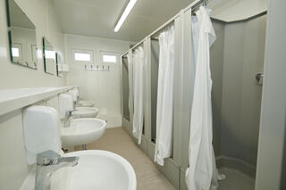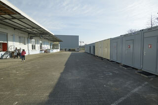 Über den Hof geht's zu Duschen und Toiletten, . . .