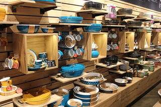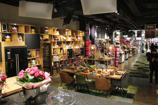 Blick in den Laden, im hinteren Teil auf der Empore ist die Küche.