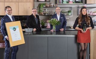 Freuen sich über die Auszeichnung zum ?Store of the Year? (von rechts): Saliha "Sally" Öczan, Q 6 Q 7-Chef Hendrik Hoffmann, Store Designer Siegfried Dumm und Swen Rubel, Geschäftsführer des Handelsverbandes Nordbaden.