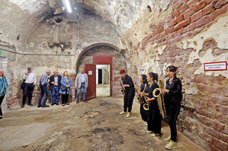 Jürgen Herrmann lädt zur Besichtigung der Kellerräume ein,..