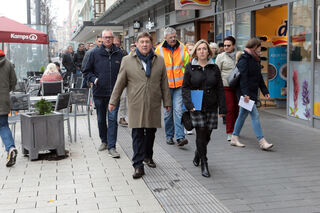 Presserundgang auf den Planken mit Bürgermeister Lothar Quast und Baumanagerin Anja Ehrenpreis.